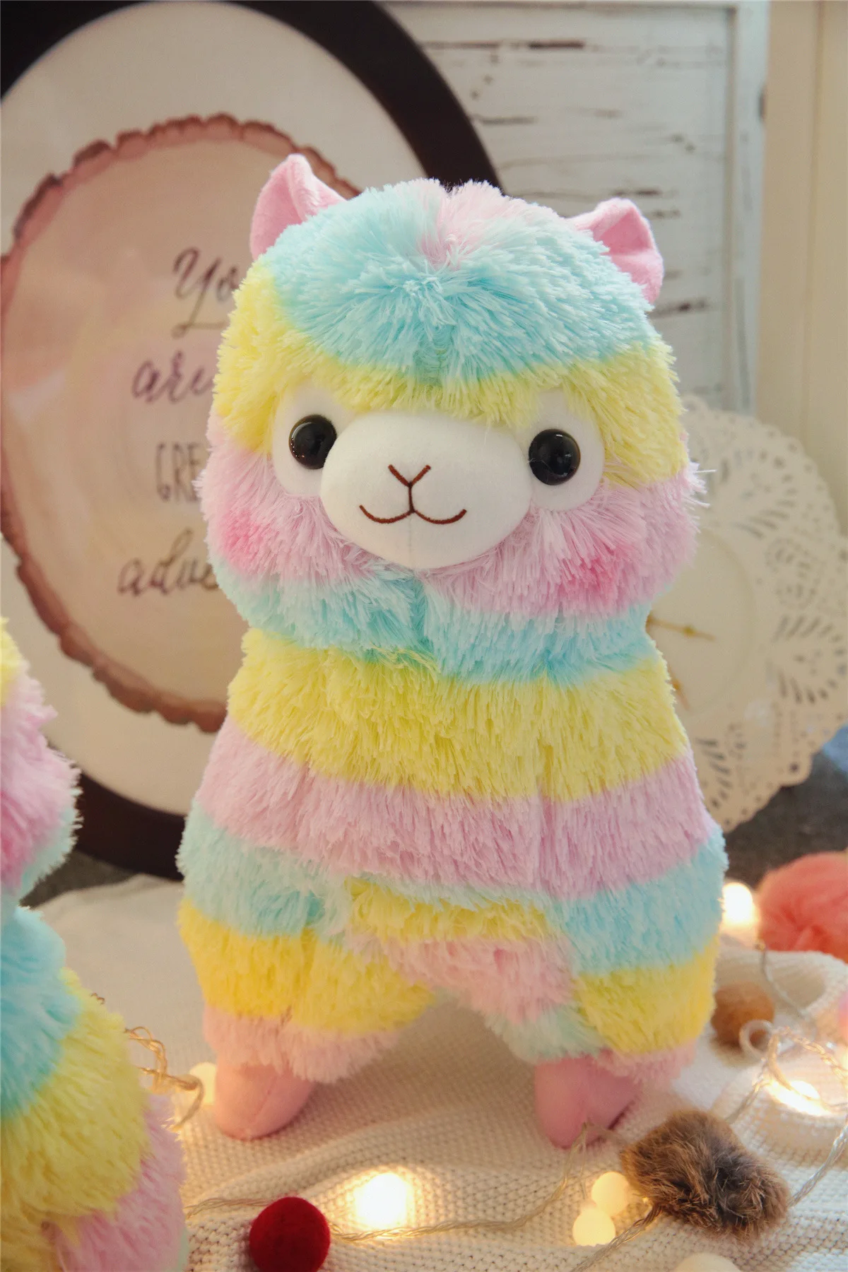 ORIGINAL Creative Alpaca Rainbow Sheep Bow Rainbow Alpaca Doll Grass Mud Horse Mythical Creatures Alpaca Plu