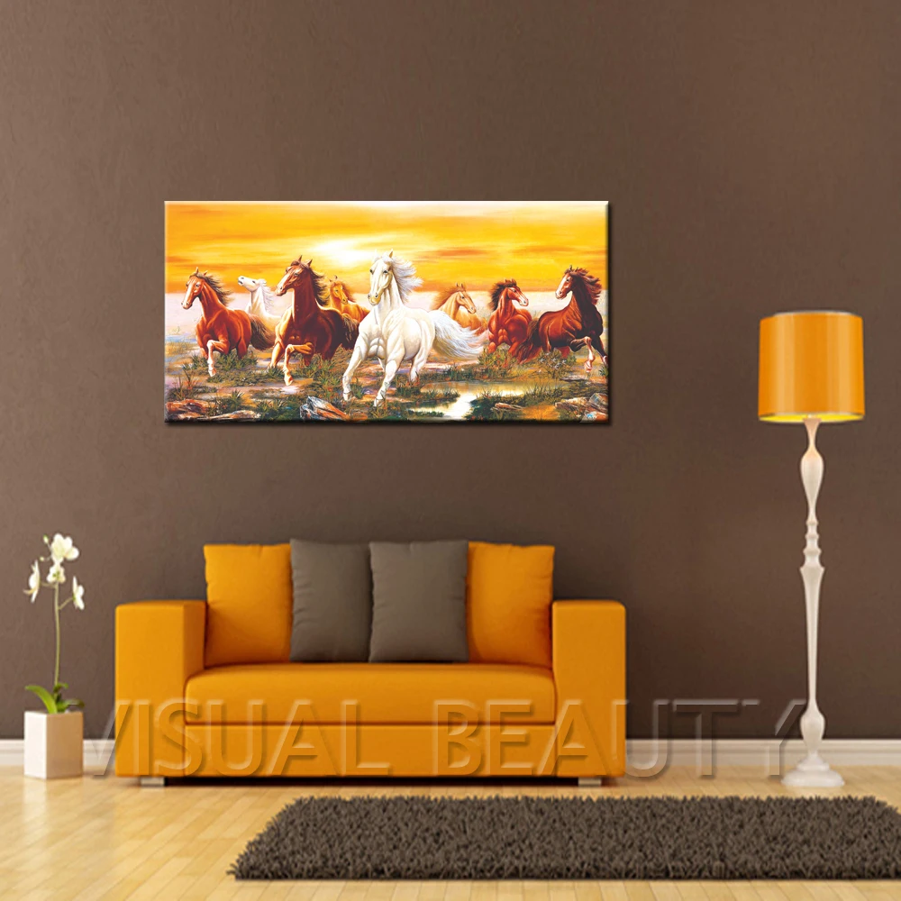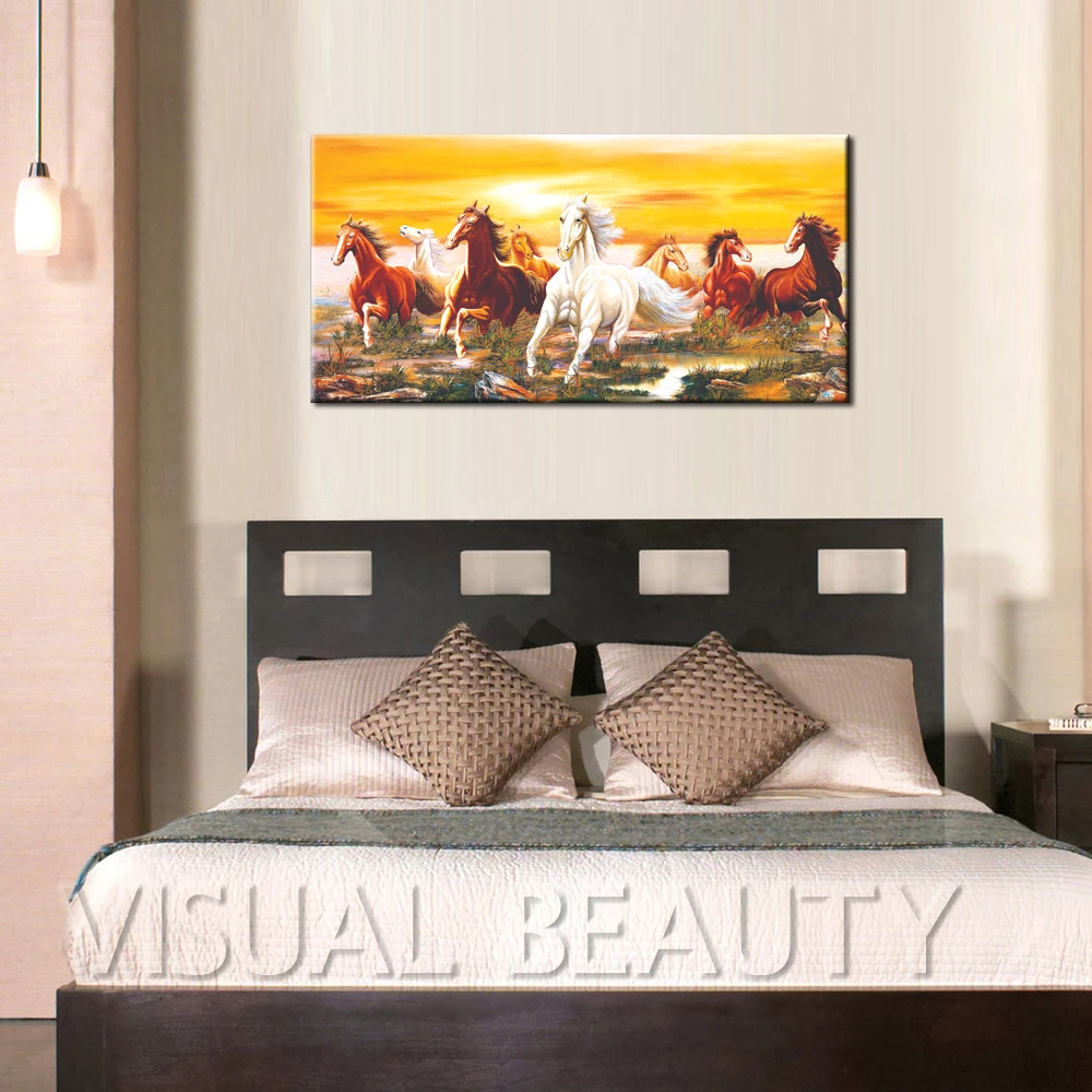 Best FREE SHIPPING High Quality Group Horse Canvas Painting Art For Wall Decor(Unframed)50x100cm