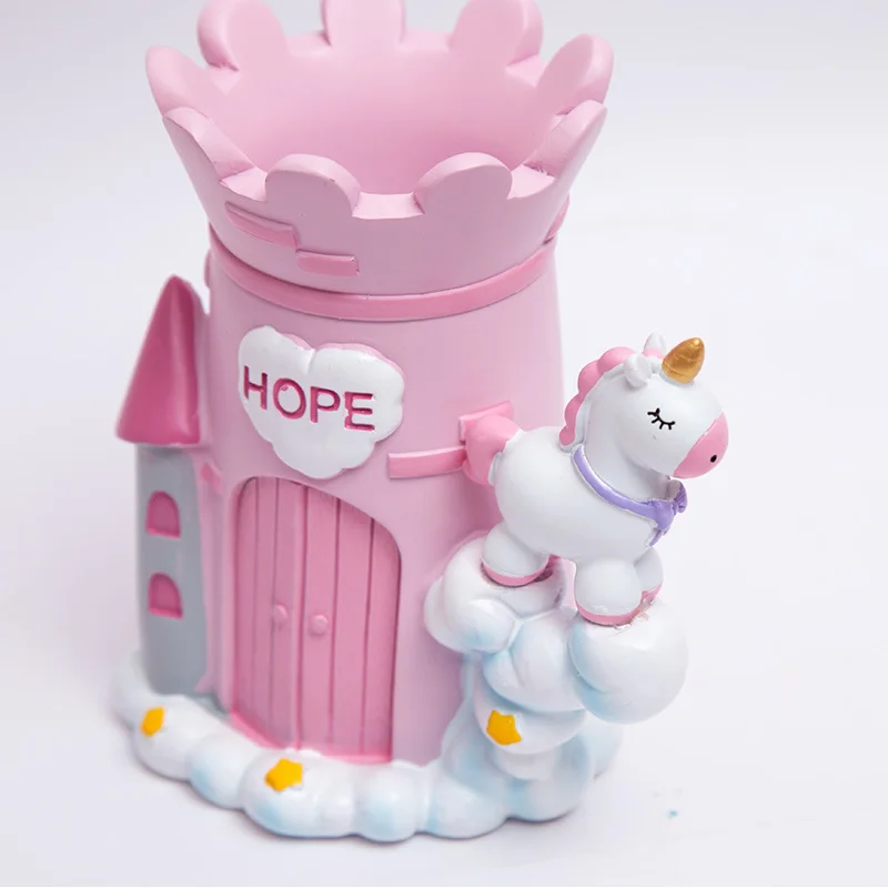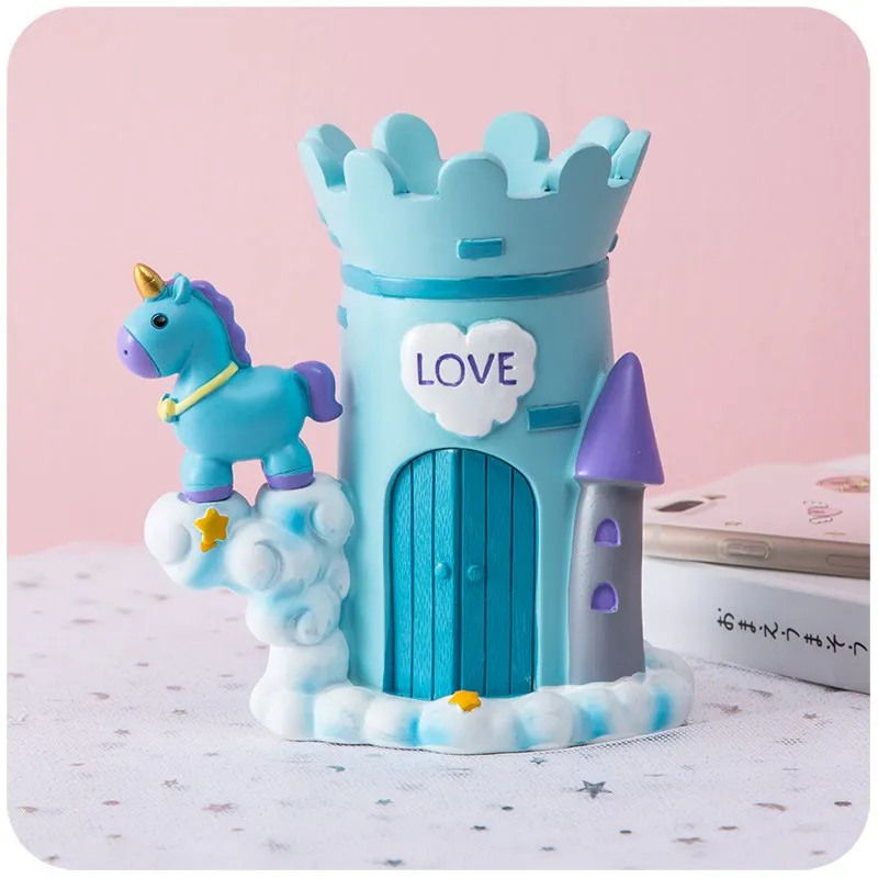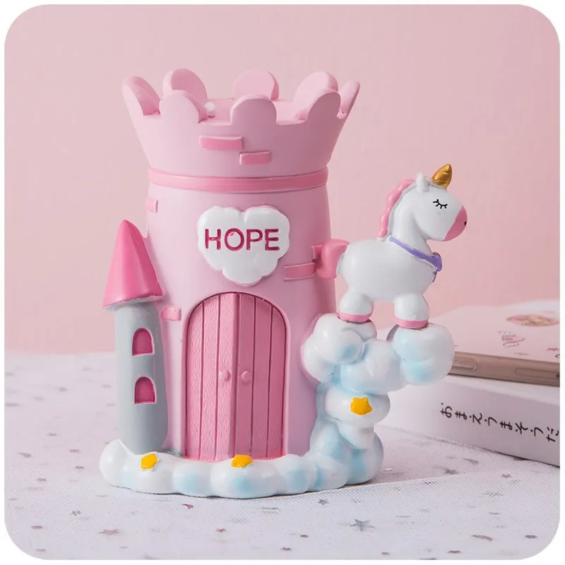 Cute cartoon horse desktop storage holders Pink Fairytale castle Desktop Decoration Office Storage