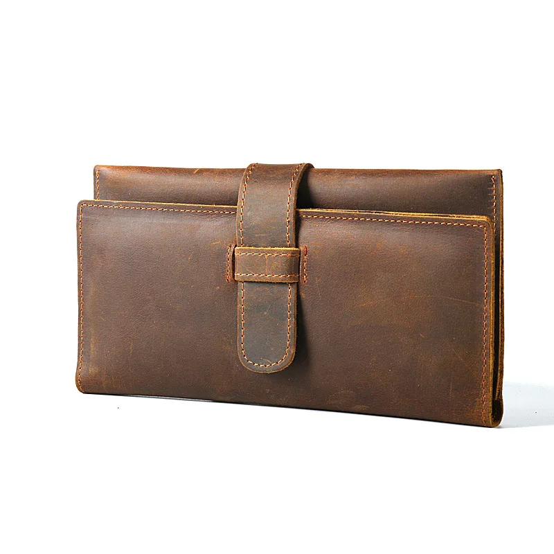 Best Seller DIKEDAKU Men Genuine Leather Wallet Vintage Solid Crazy Horse Real Leather Clutch Wallet Male Multi