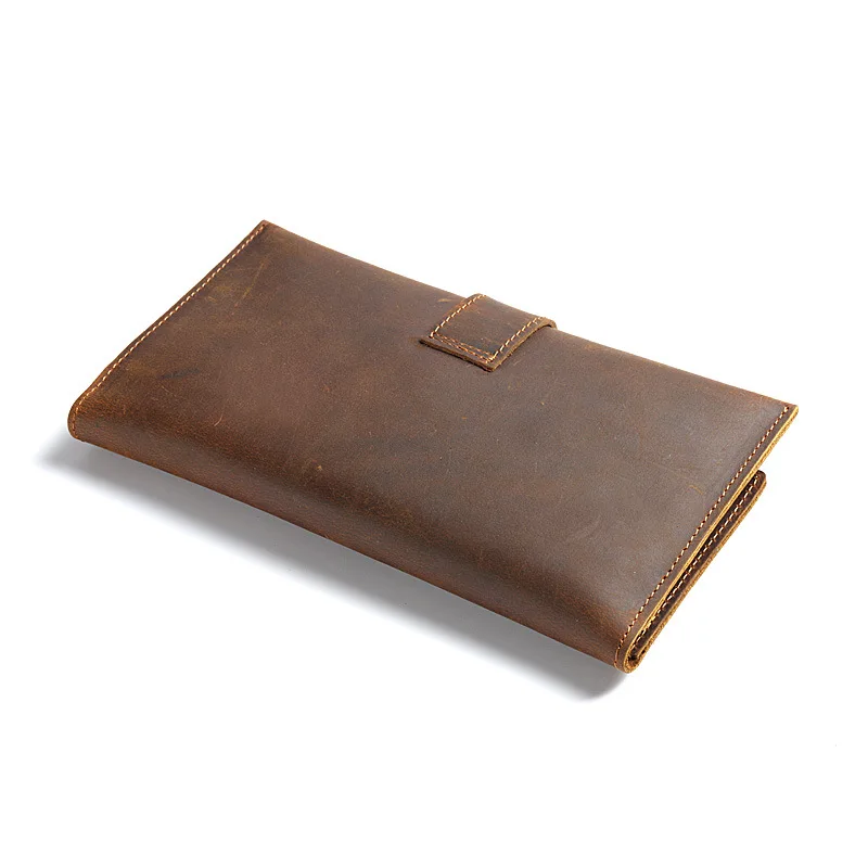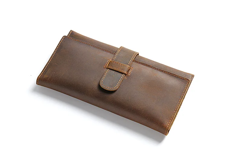 DIKEDAKU Men Genuine Leather Wallet Vintage Solid Crazy Horse Real Leather Clutch Wallet Male Multi