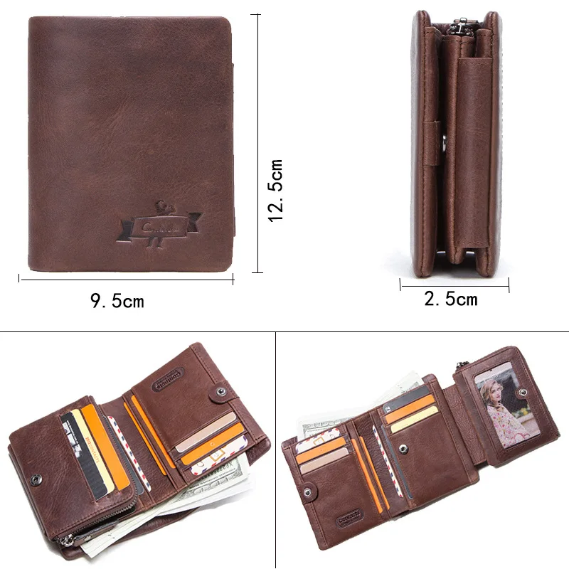 HOT Sale New Practical Retro Crazy Horse Leather Men's Wallet Fashion Genuine Leather Tri-fold Short Men's B