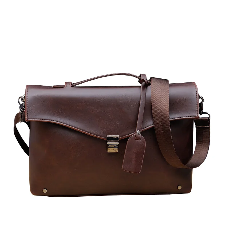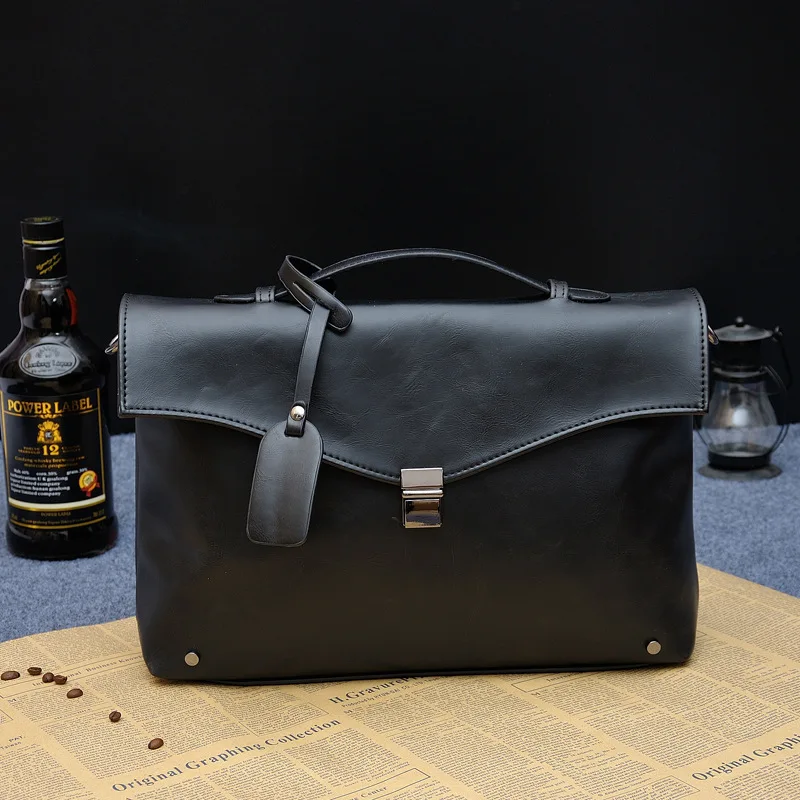 Vintage Women Men Briefcase Crazy Horse PU Leather Men's Messenger Bag Business Laptop Shoulder Bag