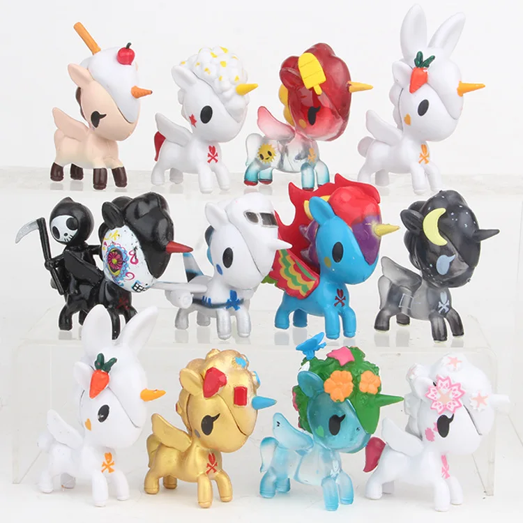 BEST 12pcs/lot Unicorn Rainbow Horses Color Toy Dolls Action Figure Model Cake Decoration Toy