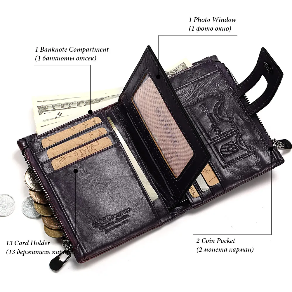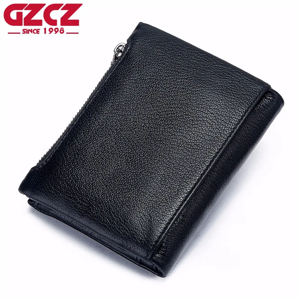 GZCZ Genuine Leather Men Wallet Fashion Short Coin Purse Small Male Purses Zipper Pocket Card Holde