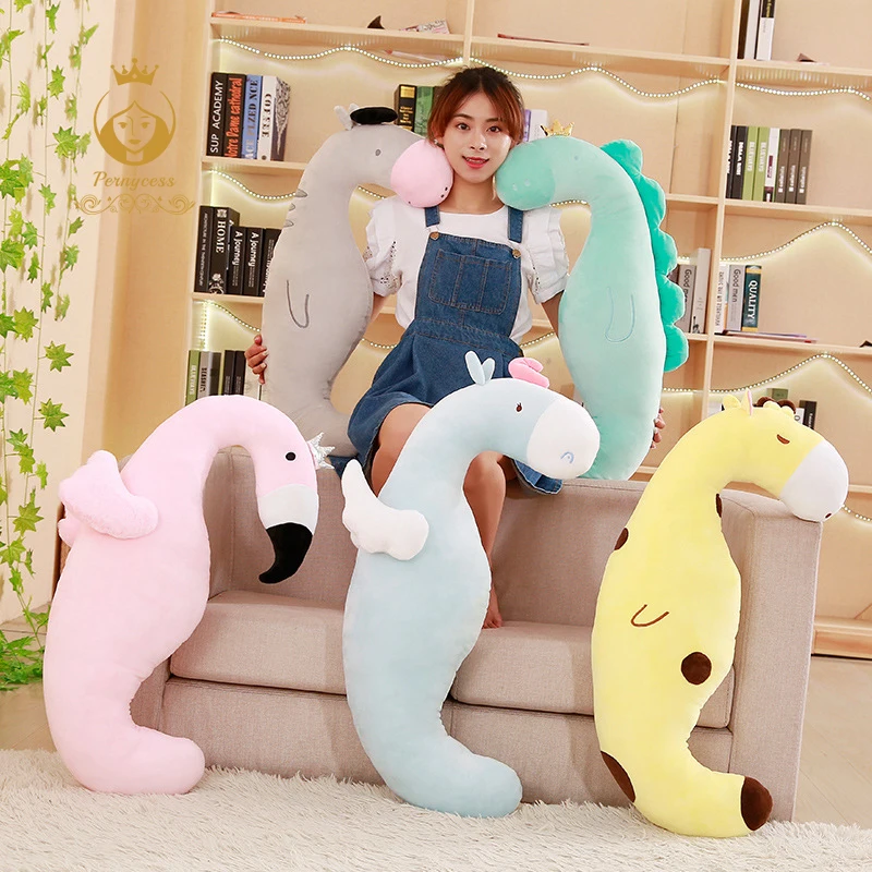 ORIGINAL Creative Cartoon Plush Stuffed Animal Flamingo Dinosaur Unicorn Curved Sleeping Pillow Personalized
