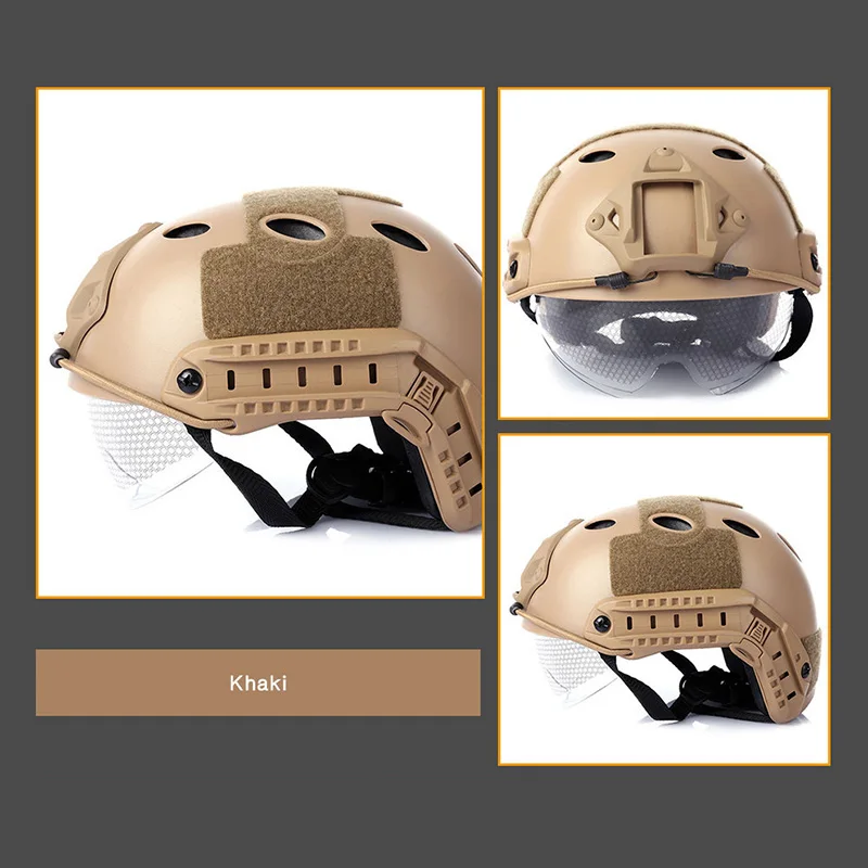Outdoor Helmet Helmet Outdoor CS Airsoft Paintball Base Jump Helmet Protector 55-59cm(Mud color)